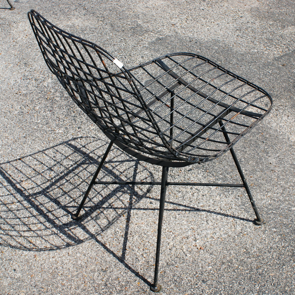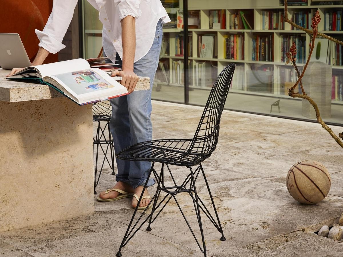 DKR 單椅結合了 Wire Chair 的網狀金屬椅座搭配鐵塔椅腳。