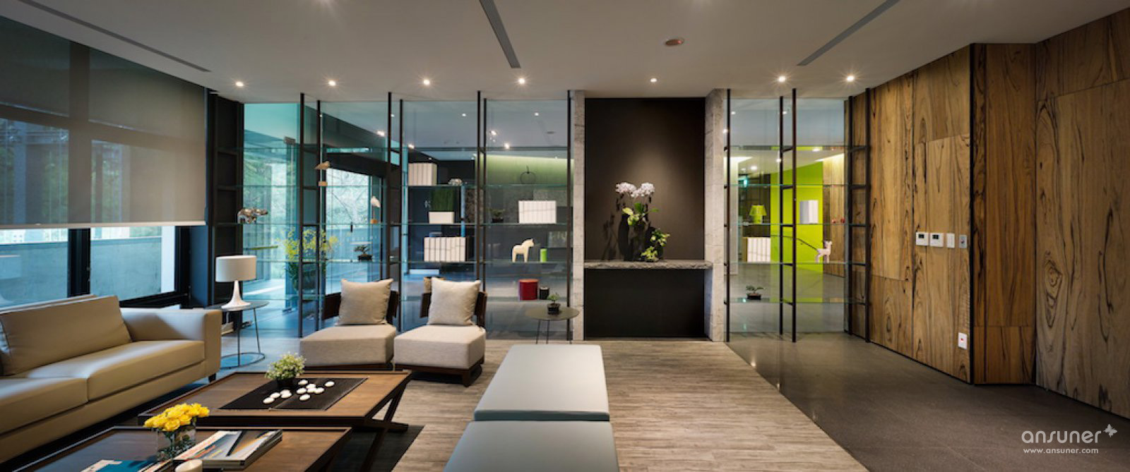 通透的梯厅,多功能的会议室,当门片全部开启时,光线自由篡流,阴霾一扫而空。